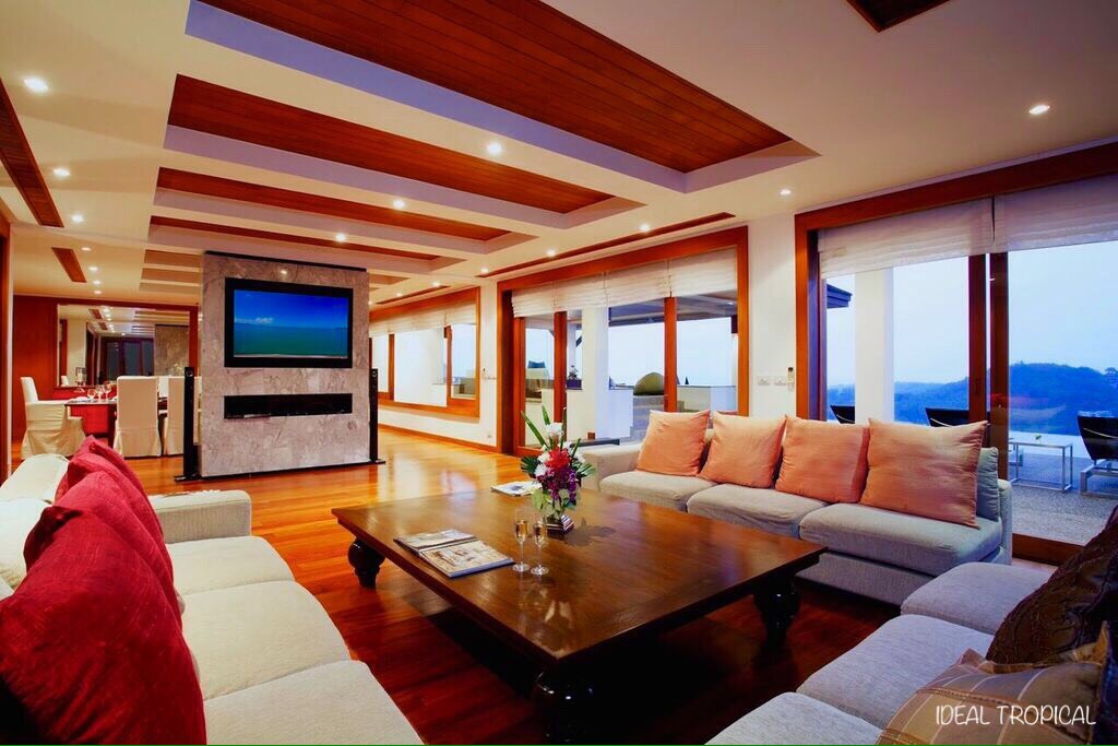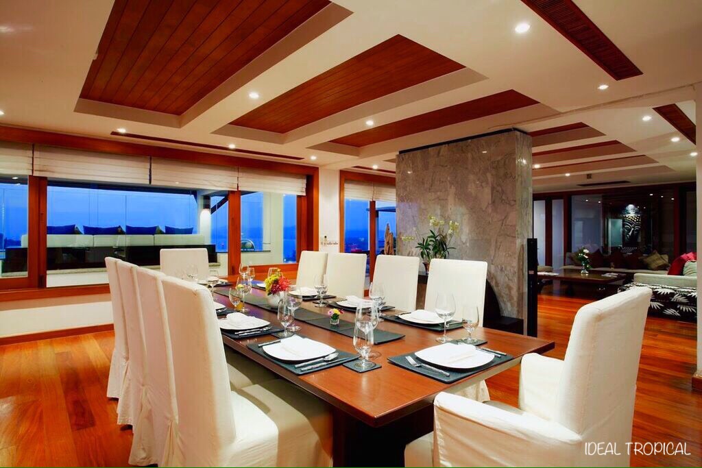 Grand luxury villa nestling on a private and secured hillside on the west coast of Phuket, an elegant styled Villa. From a commanding height of 80 meters, gives you the breath taking panorama of the Andaman Sea to the west, the towering dome-‐like mountains of Phang Nga to the north and the lush green valley that reaches out toward them. The play of terraces and salas throughout the three levels of the Villa ensures that they capture the breeze from the ocean in all seasons, as guests lie back and watch the distant horizon just beyond the crystal clear water of the 18M Infinity pool. Phuket International Airport it is just twenty minutes away. To the shopping and bustling night life of Patong, it’s half an hour’s drive on a lush and leisurely coast-‐hugging scenic route.The main living areas are spread out on three levels. It has five spacious ocean-‐view bed rooms, each with its own study or changing room, and private balcony over-‐looking Surin and Bang Tao Bay; large and airy living room and formal dining room, a sun deck by the Infinity pool, fully fitted kitchen that opens onto a large informal lounge that steps out onto yet another deck all on its own; while the pool sala –rising just above the water between two sun decks is just the place to enjoy an evening cocktail while you explore the sun as it sets majestically over the horizon under an evening sky lit up in a blaze of colours. At the top of the Villa you will find yet one more sala–between two bedroom suites ,called the ‘Half Moon Sala,’ with panoramic views amid rich greenery and privacy that you sought for in solitude.Here and everywhere the sense of openness is immediate and personal The tropical sky above and the broad landscape below merging constantly with one’s own inner space.