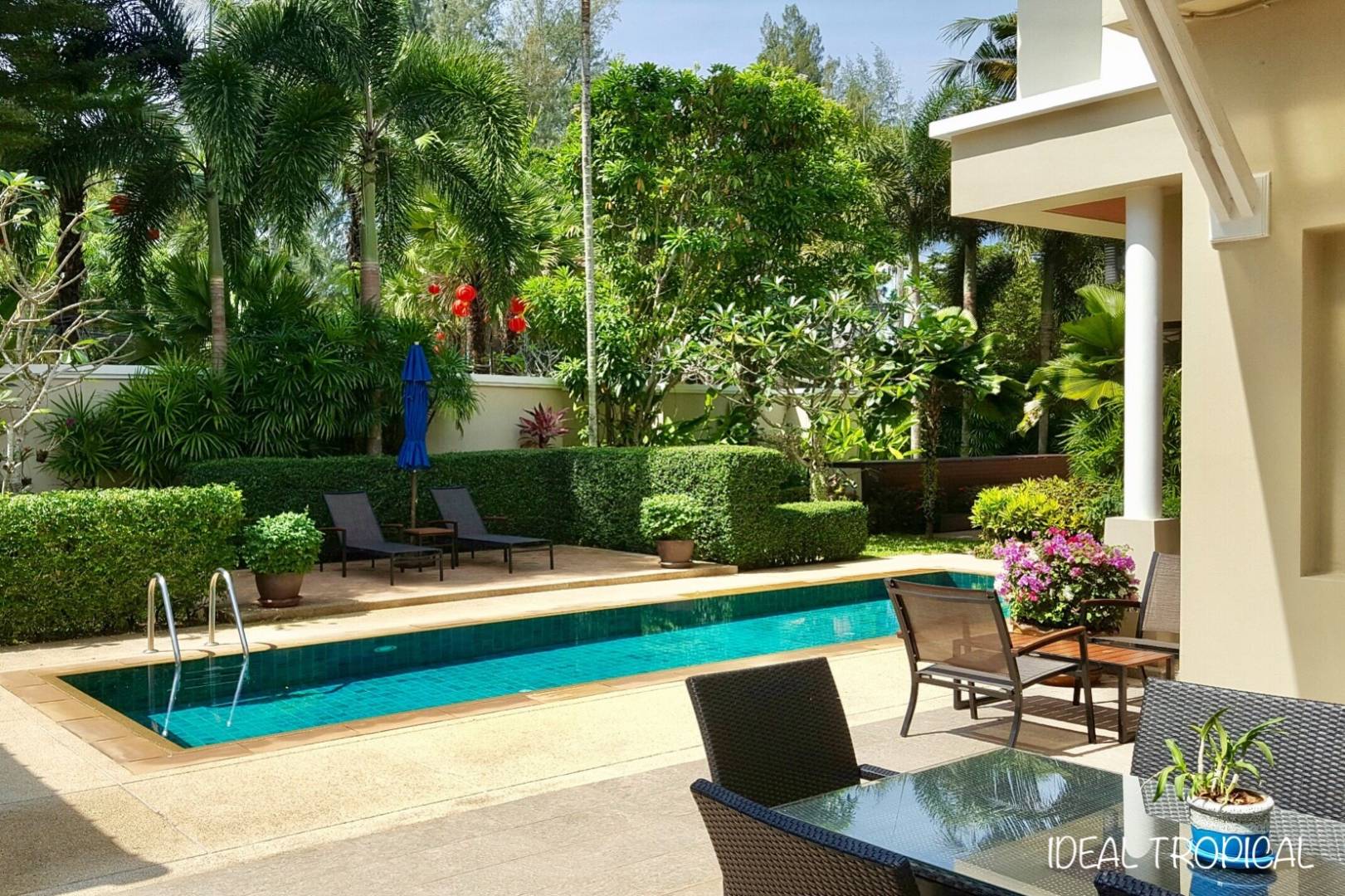 This wonderful family home is in immaculate condition with many upgrades like Sun Paradise windows and doors, new air conditioning system , western styled kitchen, huge lounge and formal dining area. The villa is being sold fully furnished, as is. This is a Fabulous example of a very well constructed and exceptionally well maintained property here on Phuket island. The villa can be 5 bedrooms if the new owner does not need a big office with en suite bathroom. The beautiful mature tropical landscaped gardens with garden sala and sundeck as well as the wonderful private 12m swimming pool , this villa has it All. I highly recommend viewing this private pool villa.