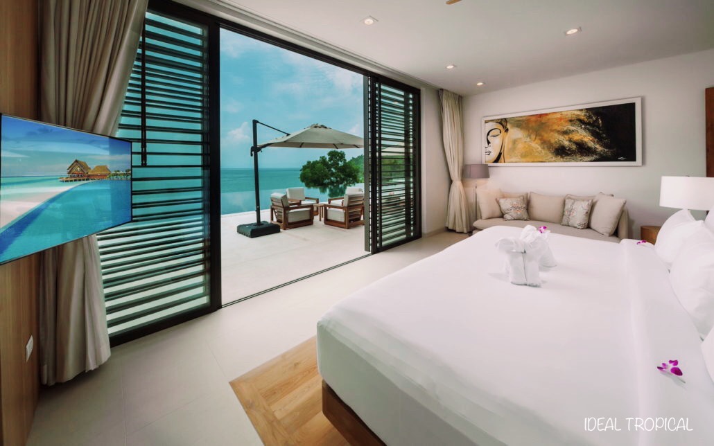 Overlooking the blue waters of the Andaman Sea on Phuket’s eastern shore and the stunning limestone formation of Phang Nga bay, Villa A is an extraordinary 7-bed villa that is a red carpet A-listed luxury villa rental. Situated above the upscale Cape Yamu, the 2016 built villa perfectly blends stunning avant-garde design features with film-star luxury and retreat-style relaxation.