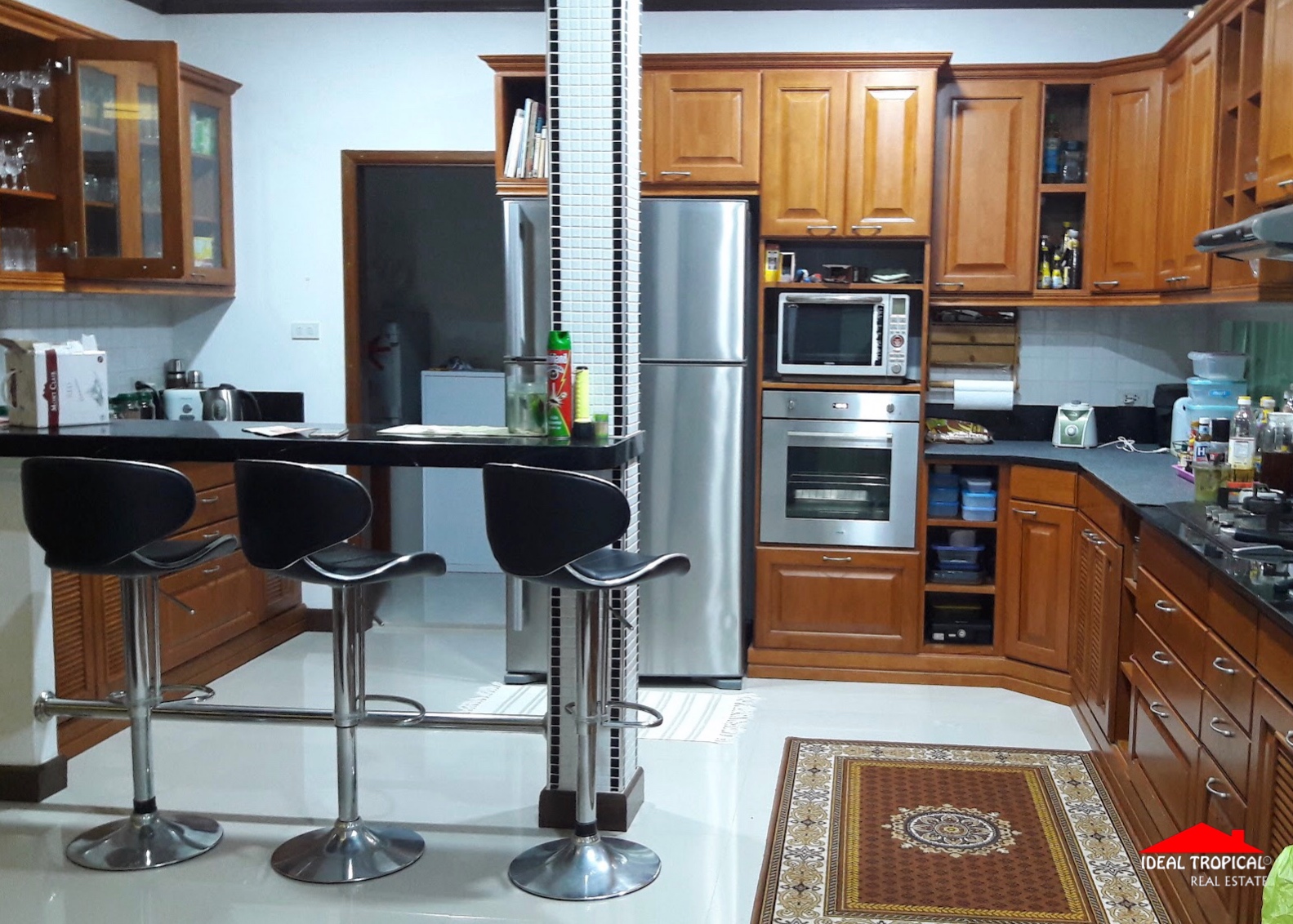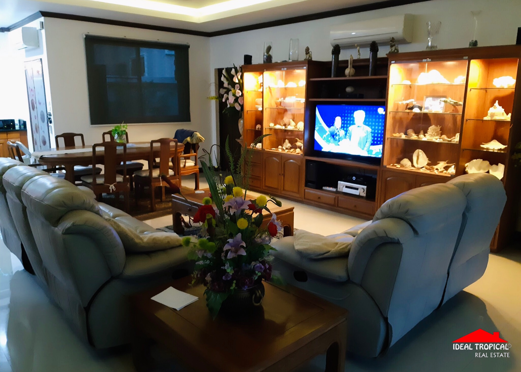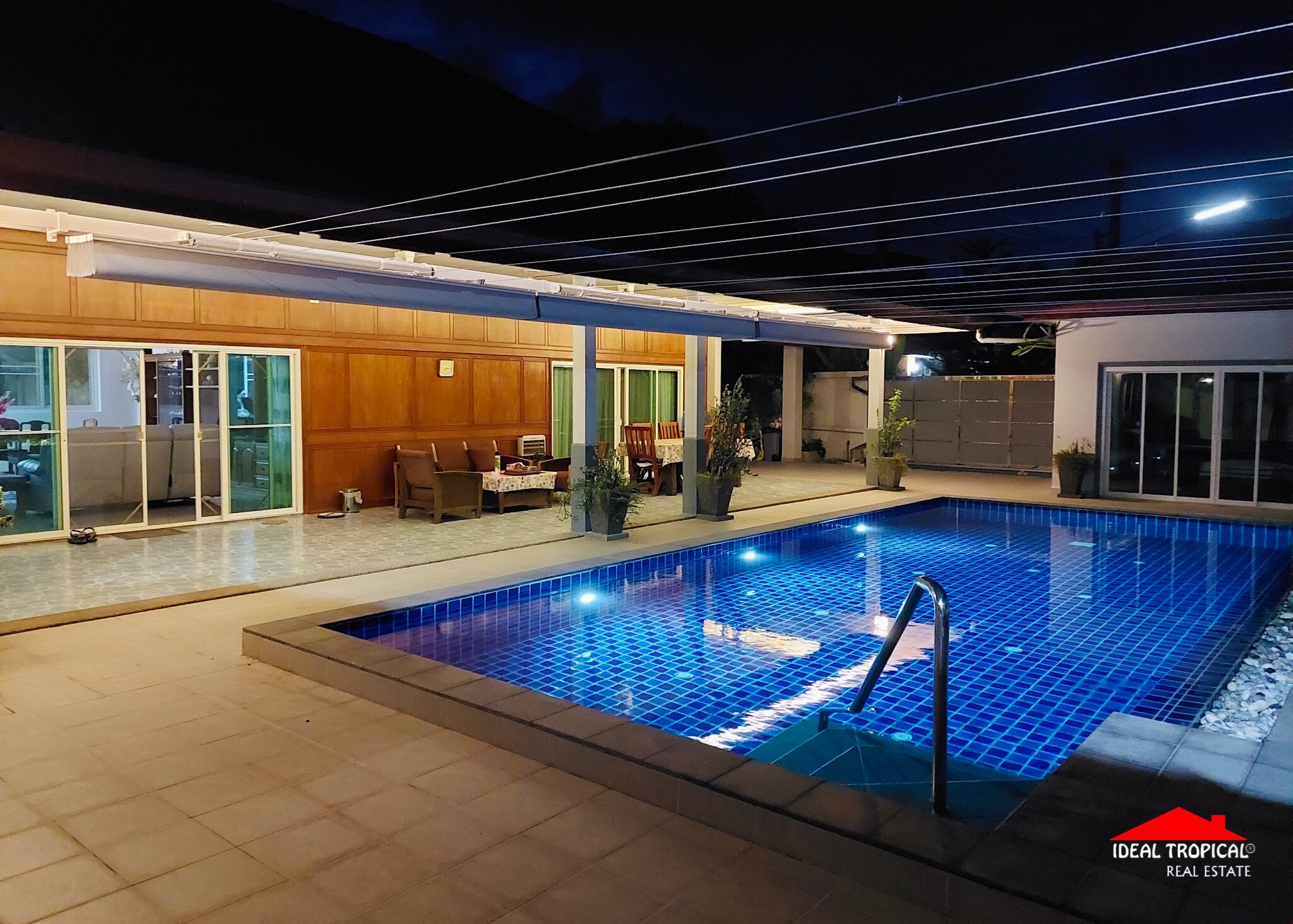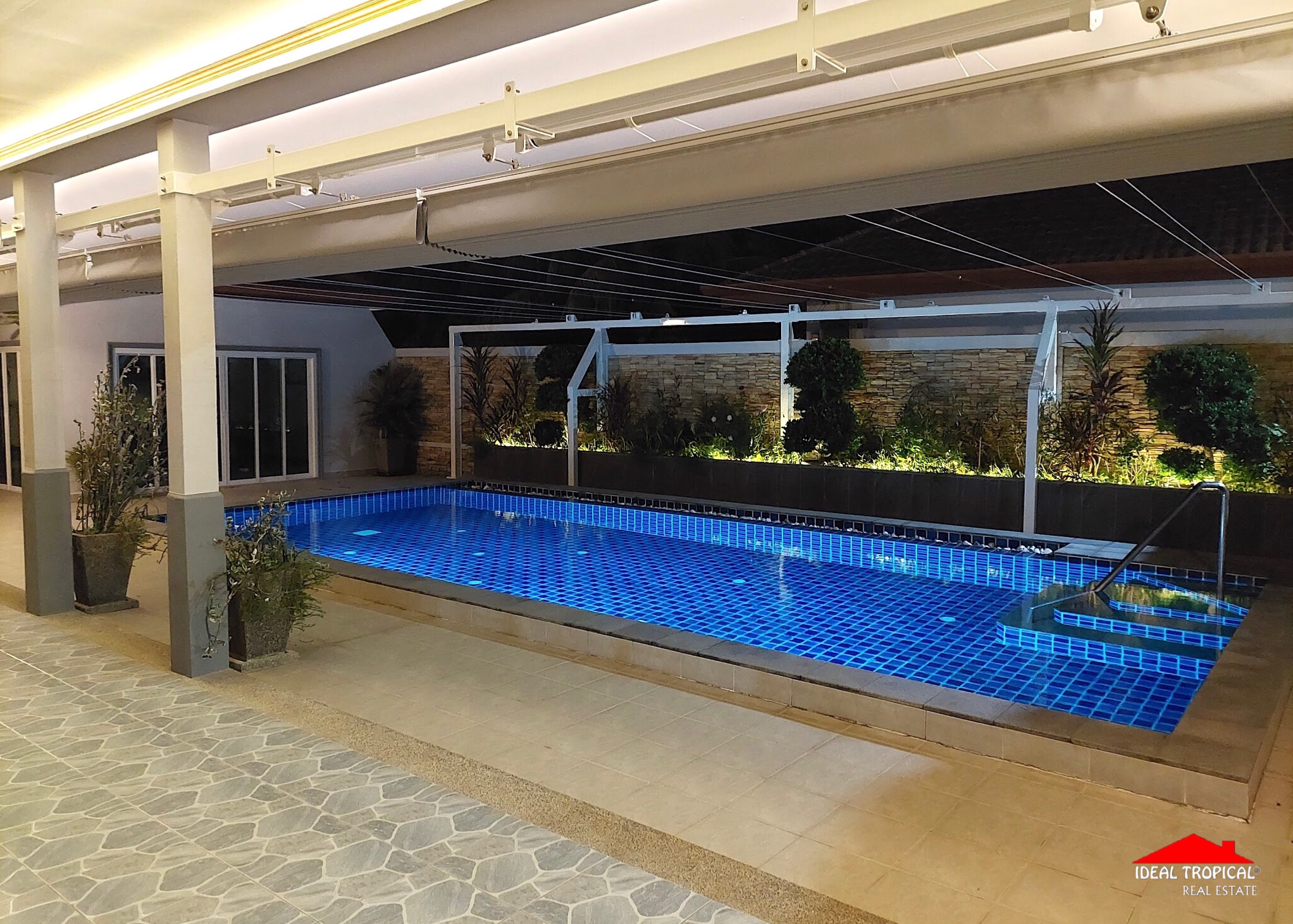The villa has 2 private car ports and electronic security gate and a gate house with a professional pool table etc. The gardens are easy maintenance with own water well.
