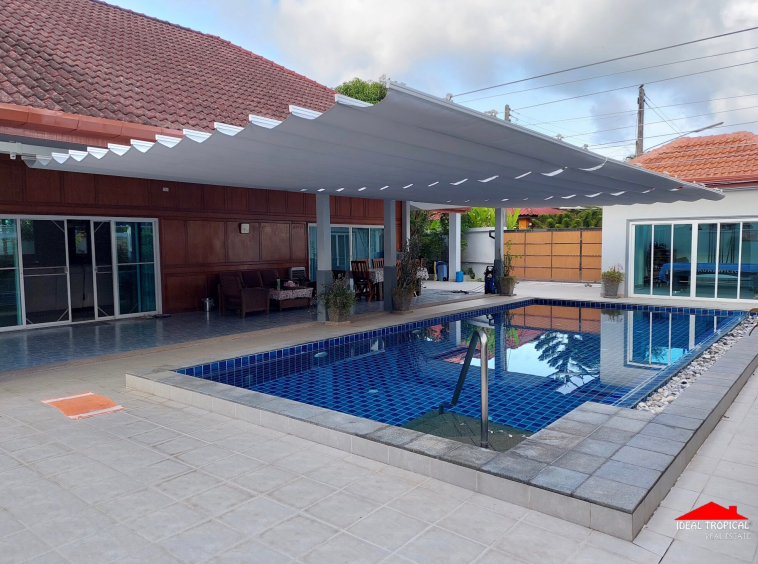 This wonderful private stand alone pool villa has just come on the market for sale. The land plot size is approximately 528 sqm with Chanote title deed. The villa internal sqm with 4 bedrooms is approximately 242 sqm.