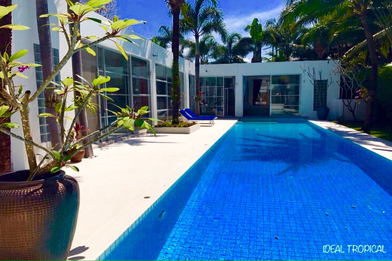 Luxurious, ultra modern and chic describes this very private pool villa. Located in the heart of Phuket Island within 5 minutes drive to (BIS) British International School and 20 minutes to Headstart school. As you drive in through the main entrance, notice the tall tropical mature palm trees and beautifully manicured landscaped gardens, WOW FACTOR!